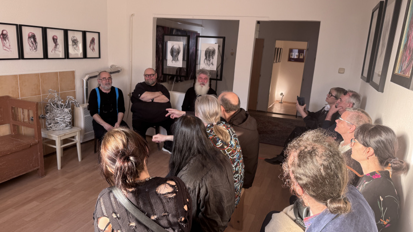 Po vernisáži si záujemci mohli posadať na lavice, priamo v galérii medzi obrazy, kde prebehla emotívne veľmi ľahká, ale obsahovo veľmi náročná a ľudsky hlboká diskusia s autorom Ľubom Gumanom, s hosťom Martinom Knutom a s kurátorom Petrom Križovenským. Ak ste nestihli vernisáž, výstavu si môžete pozrieť ešte do 20. júna v KOMORNEJ GALÉRII na Námestí slobody 81 vo Vranove. Info – Facebook: Komorná galéria Vranov.