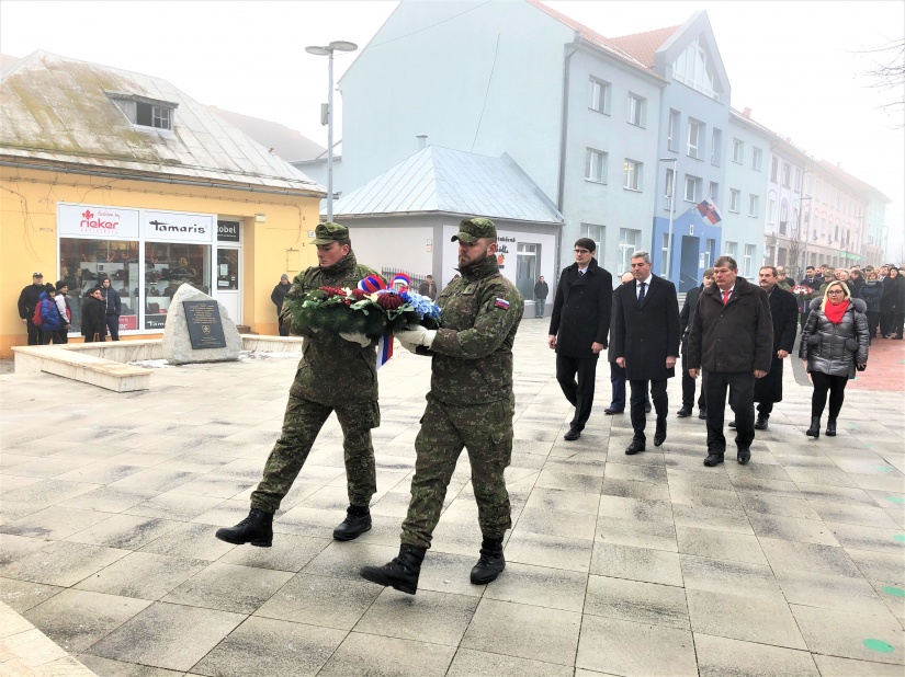 Primátor mesta Ján Ragan položil veniec k Pamätníku hrdinov a bojovníkov proti fašizmu spolu s podpredsedom Národnej rady Slovenskej republiky Bélom Bugárom, štátnym tajomníkom Ministerstva zahraničných vecí a európskych záležitosti Lukášom Parízkom, štátnym tajomníkom Ministerstva školstva, vedy, výskumu a športu Petrom Krajňákom, generálnym tajomníkom služobného úradu Ministerstva pôdohospodárstva a rozvoja vidieka Jaroslavom Regecom, podpredsedom rady ministerky školstva, vedy, výskumu a športu SR pre šport Jánom Krišandom a ďalšími predstaviteľmi štátnej a verejnej správy.