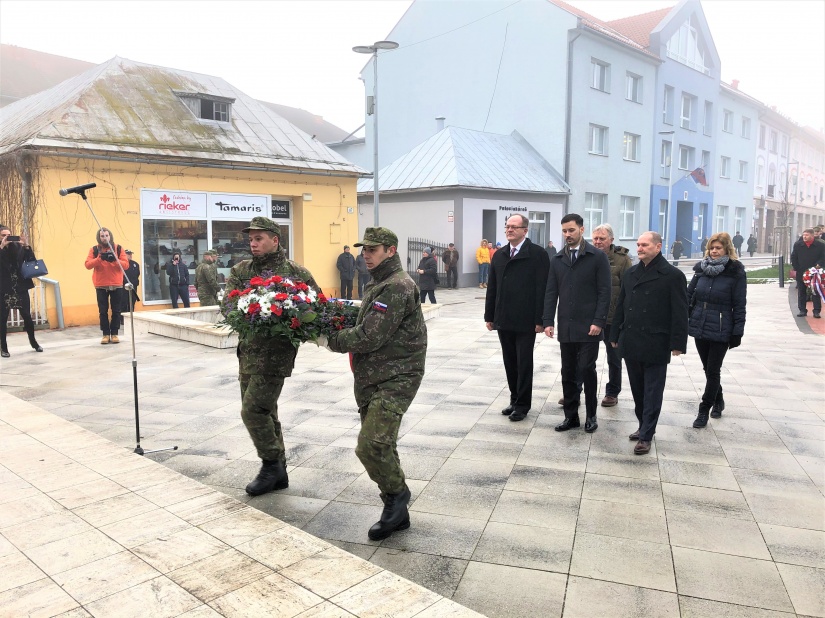 Primátor mesta Ján Ragan položil veniec k Pamätníku hrdinov a bojovníkov proti fašizmu spolu s podpredsedom Národnej rady Slovenskej republiky Bélom Bugárom, štátnym tajomníkom Ministerstva zahraničných vecí a európskych záležitosti Lukášom Parízkom, štátnym tajomníkom Ministerstva školstva, vedy, výskumu a športu Petrom Krajňákom, generálnym tajomníkom služobného úradu Ministerstva pôdohospodárstva a rozvoja vidieka Jaroslavom Regecom, podpredsedom rady ministerky školstva, vedy, výskumu a športu SR pre šport Jánom Krišandom a ďalšími predstaviteľmi štátnej a verejnej správy.