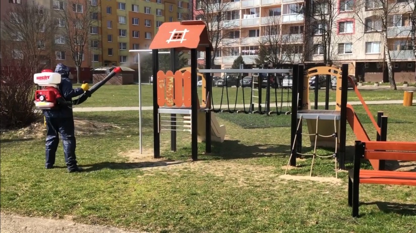 Aktuality a oznamy » Udialo sa... » Mesto začalo s dezinfekciou stojísk, verejných priestorov a mestského mobiliáru + video