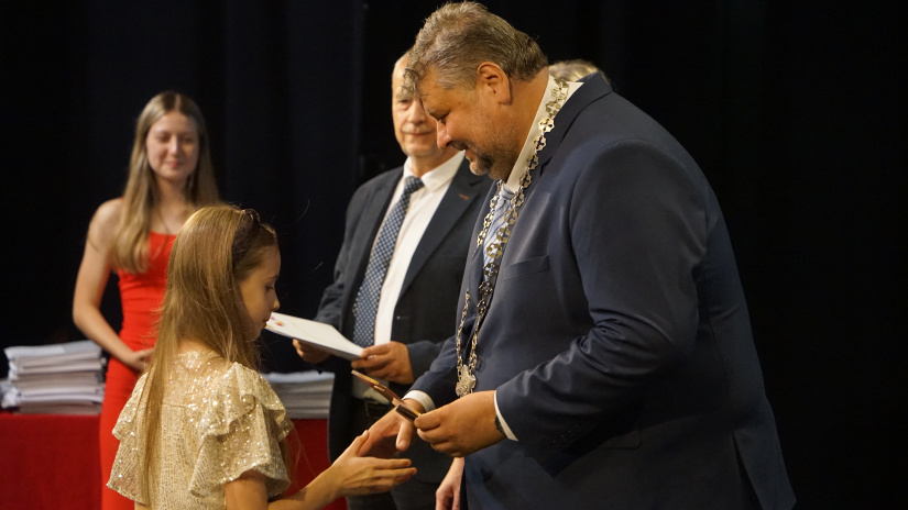 Dnešné ocenenia sú symbolom toho, že keď sa spojí úsilie žiakov, vedenie pedagógov a opora rodiny, môžu vznikať výnimočné veci. Nech je tento deň povzbudením pre všetkých – aby ste naďalej verili svojim schopnostiam a nebáli sa veľkých cieľov. A teraz mi dovoľte pristúpiť k tej najkrajšej časti dnešného stretnutia – k slávnostnému oceňovaniu našich úspešných reprezentantov. Zo srdca vám všetkým blahoželám a ďakujem.„ prihovoril sa prítomným primátor Ján Ragan.