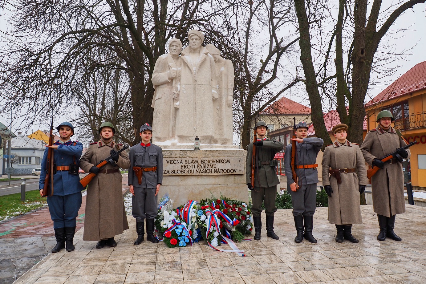 Záver podujatia patril pietnemu aktu kladenia vencov pri pamätníku hrdinom a bojovníkom proti fašizmu. Primátor mesta Ján Ragan spolu s organizáciami štátnej a verejnej správy si uctili pamiatku padlých, položením vencov k pamätníku.