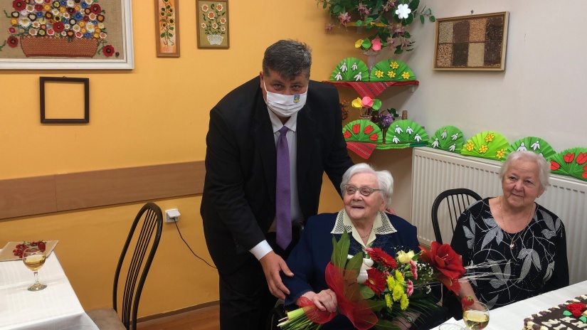 „Len málo ľudí na svete sa dožije takéhoto krásneho veku. O to viac ma teší, že aj v našom meste máme občianku, ktorá sa ho dožila. Milá naša jubilantka, v prvom rade Vám chcem poďakovať za Váš činorodý život, počas ktorého ste vychovali deväť detí, vnúčatá, pravnúčatá a za kus práce, ktorú ste vykonali na svojom pracovisku. Určite ste prínosom aj pre naše zariadenie, v ktorom bývate už 35 rokov a podieľate sa na živote v ňom. Za toto všetko Vám patrí VEĽKÁ VĎAKA, ÚCTA A OBDIV,“ povedal primátor mesta.