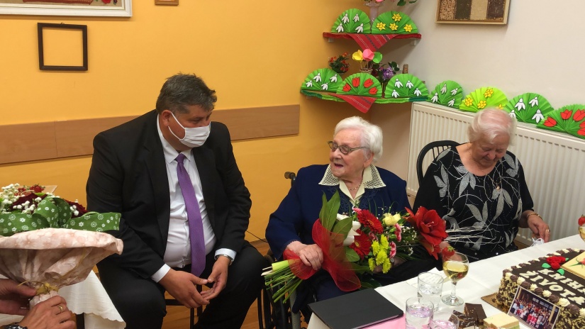 „Len málo ľudí na svete sa dožije takéhoto krásneho veku. O to viac ma teší, že aj v našom meste máme občianku, ktorá sa ho dožila. Milá naša jubilantka, v prvom rade Vám chcem poďakovať za Váš činorodý život, počas ktorého ste vychovali deväť detí, vnúčatá, pravnúčatá a za kus práce, ktorú ste vykonali na svojom pracovisku. Určite ste prínosom aj pre naše zariadenie, v ktorom bývate už 35 rokov a podieľate sa na živote v ňom. Za toto všetko Vám patrí VEĽKÁ VĎAKA, ÚCTA A OBDIV,“ povedal primátor mesta.