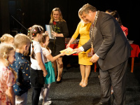 Zároveň, všetkým prvákom zaželal, aby to, čo sa naučili v prvom ročníku, čítať, písať, počítať, čo najlepšie využili v ďalšom svojom štúdiu a následne si mohli vybrať svoje vysnívané povolanie. Po príhovore si postupne všetci prváci z rúk primátora mesta a vedúcej oddelenia školstva prevzali darček – knihu S Vrankom za poznaním s obrázkovým pexesom a nechýbala ani sladkosť v podobe abecedy.
