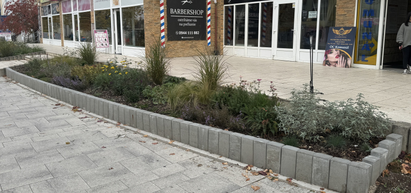V máji tohto roku mesto pristúpilo k rozsiahlej revitalizácii priestoru pred budovou OC Komunál. Pôvodná nevzhľadná zeleň, pozostávajúca z prerastených a neudržiavaných krovín, bola odstránená a nahradená pestrou výsadbou kvitnúcich trvaliek.