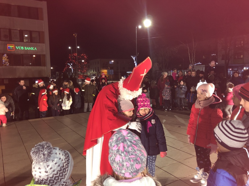 V stredu 5. 12. 2018 naše mesto navštívil Mikuláš. Spolu so svojimi spoločníkmi anjelikmi prišiel na námestie pred AOC v krásne vyzdobenom koči. Počas návštevy vyspovedal, obdaroval a odfotil sa s tými najmenšími a rozžiaril krásne vyzdobený vianočný stromček.