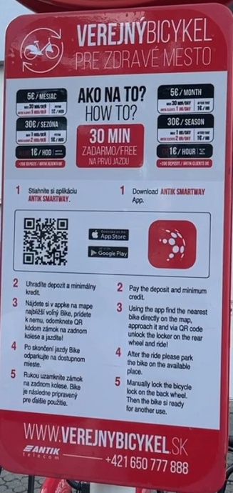 • pred použitím zdieľaného bicykla je potrebné stiahnuť si aplikáciu ANTIK SmartWay dostupnú pre iOS aj Android.