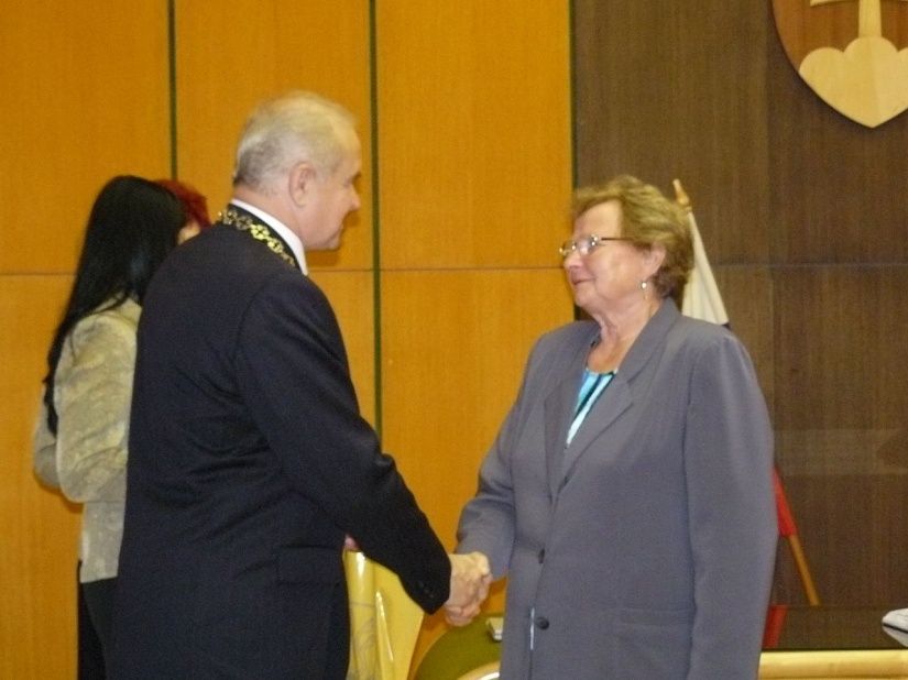 „Za prácu, za dobro plácou sa odplácaj,“ hovorí ľudské príslovie. Dnes sa vám chceme odplatiť aspoň dobrým slovom, slovom uznania za všetko, čo ste pre svojich najbližších a pre mesto Vranov vykonali, za to, že ste cez skromnosť šľachtili vo svojich deťoch, vnukoch a možno i pravnukoch vzťah k poctivej práci a k iným ľudským hodnotám.“ Jubilanti pridali na stránky pamätnej knihy svoj podpis, z rúk primátora si prevzali malý darček, započúvali sa do krásnych ľudových pesničiek v podaní folklórnej skupiny Konopianka zo Žalobína a s Máriou Jenčovou si zaspievali známe repeťácke hity. Slávnostné stretnutie umocnila čaša vína, drobné pohostenie, spomienkami naplnené vzájomné rozhovory, ale i slzičky v očiach vďačných jubilujúcich občanov. V programe účinkovali recitátorky ZPOZ Viera Machková a Drahoslava Kalmanová.