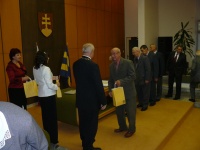 Jubilanti sa podpísali do pamätnej knihy, prijali osobnú gratuláciu od primátora, ale aj pamätnú medailu mesta, ktorou si mesto pripomenulo tohoročné 740. výročie prvej písomnej zmienky a vecný darček. Vzácne chvíle spríjemnili členovia folklórnej skupiny Konopianka zo Žalobína a speváčka Marienka Jenčová a umocnila čaša vína. Áno, starší ľudia si zaslúžia úctu. Veď vekom nadobudli skúsenosti, ktoré môžu odovzdávať nám mladším, ak o to stojíme.